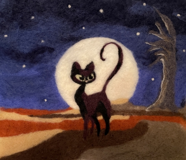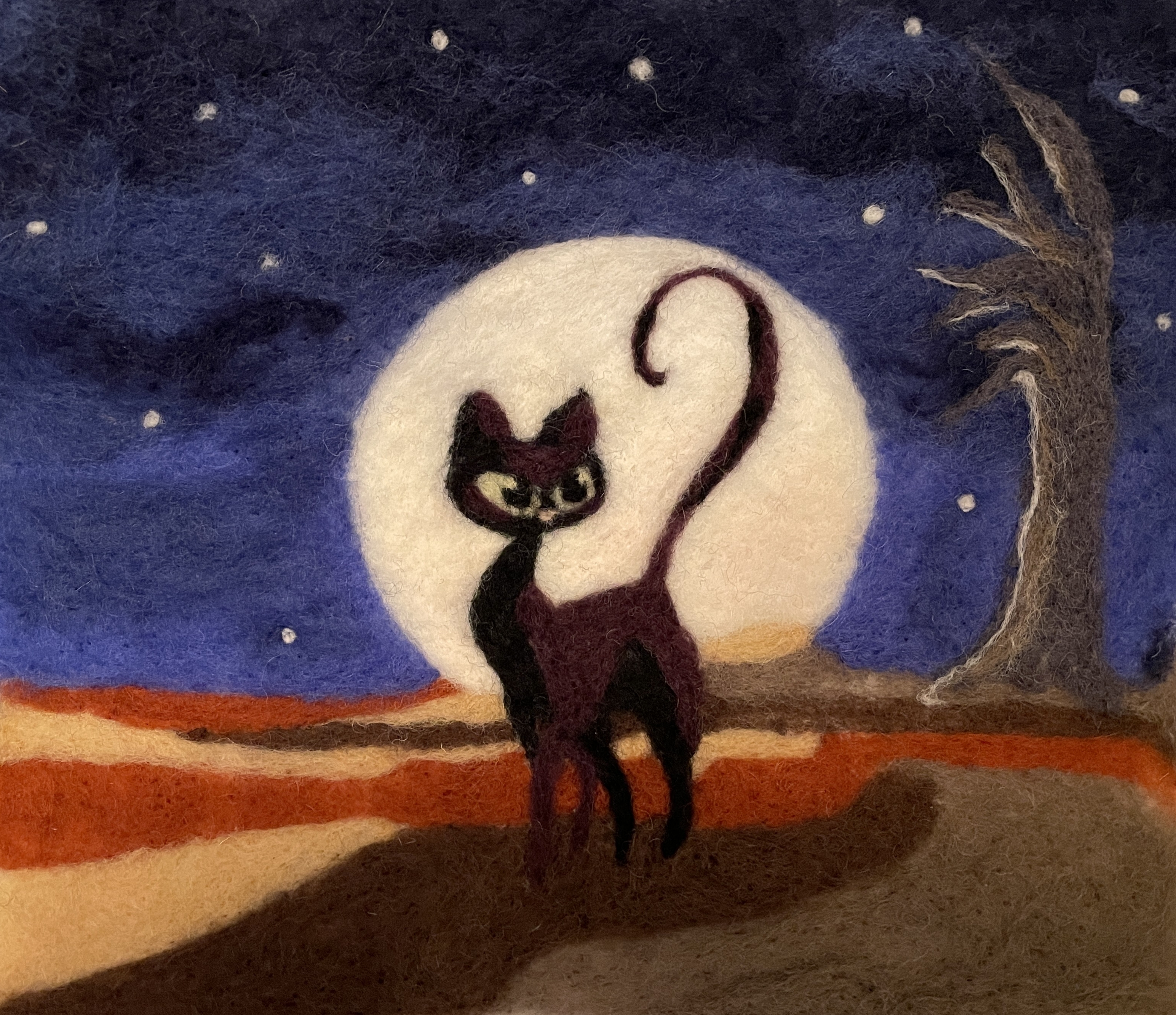 Stamped on 1mm White Felt Sheet 10″ x 12″ (8″ x 10″ image). The kit is sold with Carded Maori Batt but can be done in any fibre or colour pallet of your choosing by selecting either the Canvas Only or Download option and using your own wools.