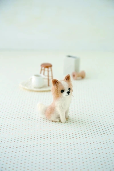 3D felted Realistic Long Hair Chihuahua Dog, designed by Sachiko Susa