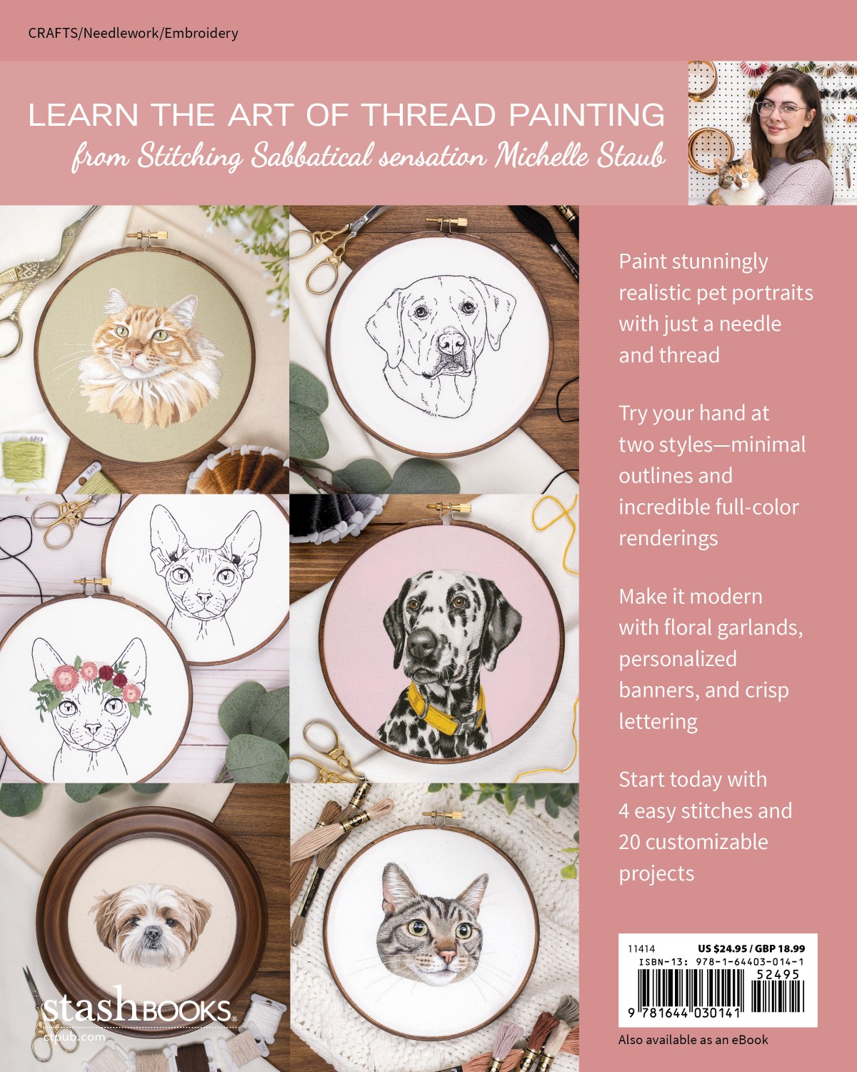 Cats and dogs seem to always have a paw planted firmly in our hearts. Capture the life in their eyes and the texture of their fur with a unique embroidered pet portrait! Self-taught artist Michelle Staub puts a modern spin on thread painting with her easy-to-learn approach. Get started with 4 basic embroidery stitches, and follow the detailed tutorials to hone your skills. Capture awe-inspiring details of your pet with lessons in full-color thread painting or go clean with a simple line drawing¿the choice is yours. Learn to personalize your art piece with names, dates, and decorative accents. With 20 sample patterns to customize, you can easily recreate any breed!
